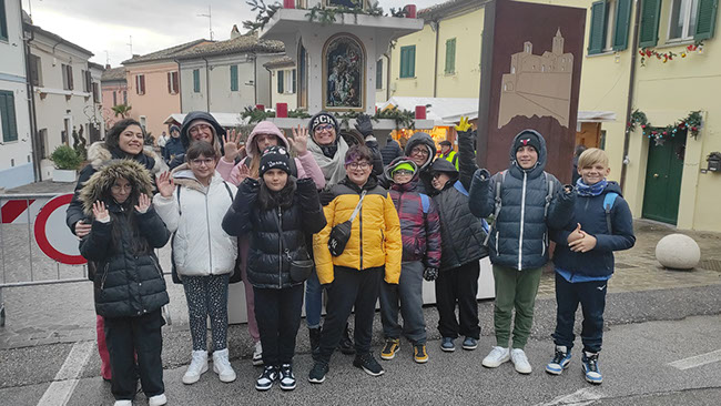 Qual'è il suono più dolce, più caldo e accogliente al mondo?!? La risposta può essere solo una: le risate dei bambini e dei ragazzi. La nostra Associazione ha offerto loro un bellissimo pomeriggio spensierato tra le vie di Candelara, dove ad aspettarci c'era una splendida atmosfera natalizia con tante bancarelle fornite di ogni genere di oggettistica e un' infinità di decorazioni fatte con le candele, i giochi di strada in legno che hanno fatto tornare piccini anche i genitori, c' erano tanti Babbo Natale che suonavano melodie che rallegravano l' Anima e spettacolari trampolieri che danzavano sinuosamente; per non parlare poi del fantastico spettacolo a luci spente che ha riempito gli occhi di tutti i presenti con strepitose luci soffuse che solo le candele riescono ad emanare. È stato tutto perfetto: la vivacità dei bambini, la loro insaziabile curiosità e la voglia di stare tutti insieme, il sole che è tornato a splendere appena siamo scesi dal pullman e le tre stupende educatrici Simona, Sofia e Ilaria che ogni giorno affiancano i ragazzi sia nei loro momenti di concentrazione, sia nei giorni di svago.